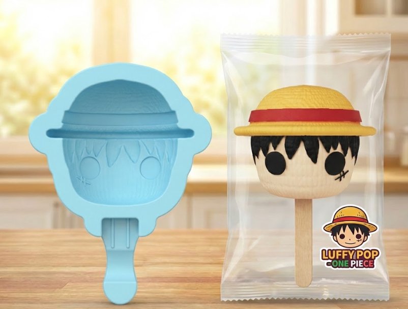 ¡Crea postres legendarios con este molde de Monkey D. Luffy! Diseñado para obtener una paleta de gran tamaño y detalle, perfecta para venta o para disfrutar en casa. Su diseño captura el rostro y sombrero del personaje con una profundidad ideal para desmoldar sin perder la forma.